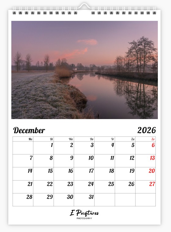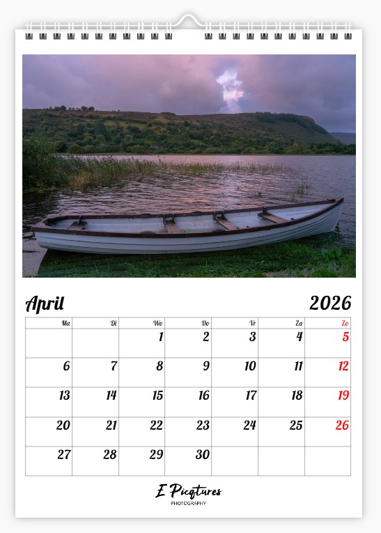 Het is een grote A3-kalender met foto’s van mooie afmetingen en voldoende ruimte om al je afspraken te noteren. Hij kost €25 bij afhaling en €30 bij verzending.