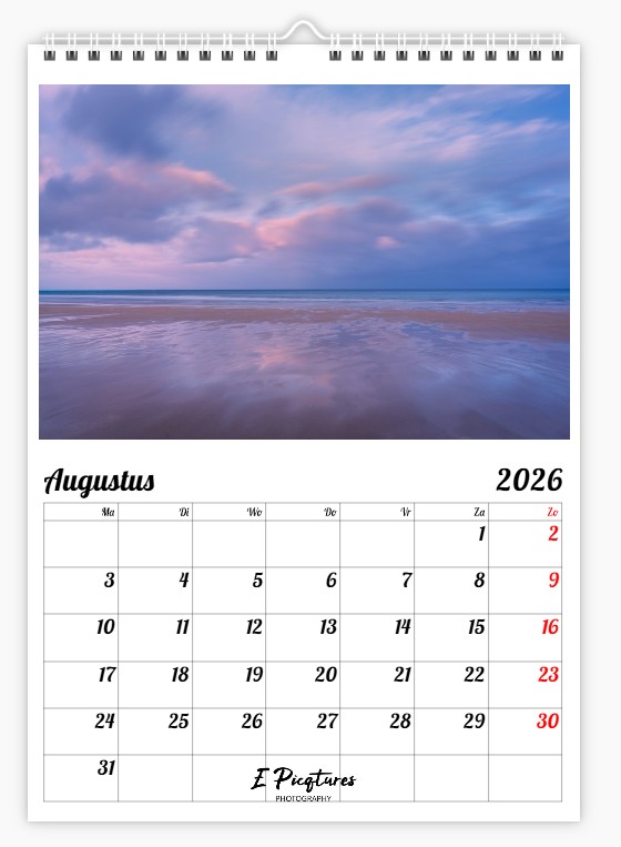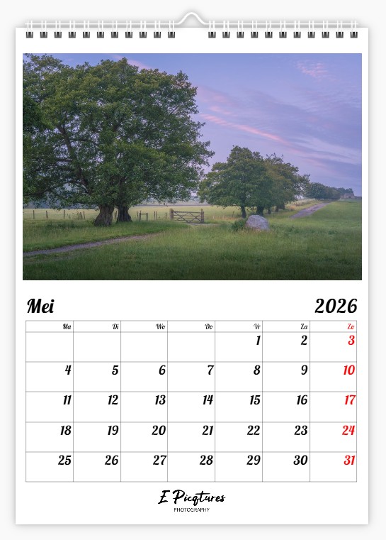 Deze kalender verschijnt dit jaar voor de derde keer. Elke foto is het resultaat van wandelingen door de natuur, op zoek naar dat ene moment, dat bijzondere licht of een mooie compositie – op het strand, in het bos, of ergens onderweg.